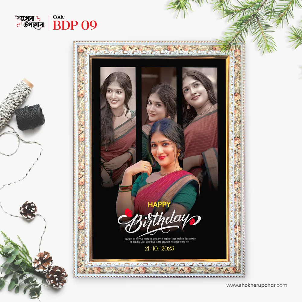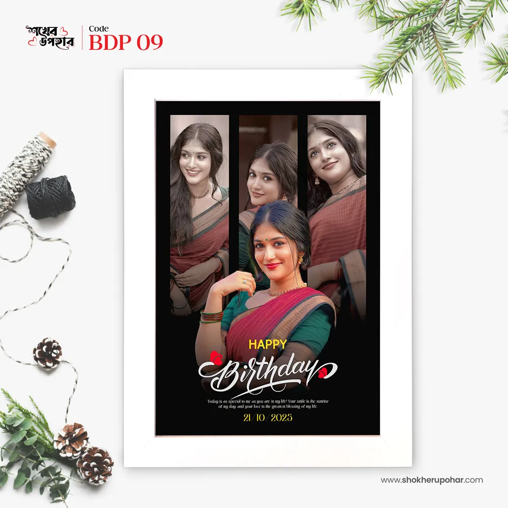 বিশেষ মুহূর্তের জন্য নিজস্ব ডিজাইনের প্রিমিয়াম মানের ফটো ফ্রেম। আপনার ছবি, নাম, বার্ষিকীর তারিখ ও ছোট মেসেজ দিয়ে তৈরি হবে একদম ইউনিক উপহার। টেবিলে বা দেয়ালে সাজানোর জন্য পারফেক্ট। ✔️ কালার: ব্ল্যাক, হোয়াইট, ফ্লাওয়ার ডিজাইন ✔️ ছবি ও লেখাগুলো আপনার মতো করে ডিজাইন ✔️ আপনার ছবি আপলোড করুন 📩 এখনই অর্ডার করুন, আমরা আপনাকে ফোন দিয়ে বিস্তারিত জানাবো।ফ্রেমের বৈশিষ্ট্য